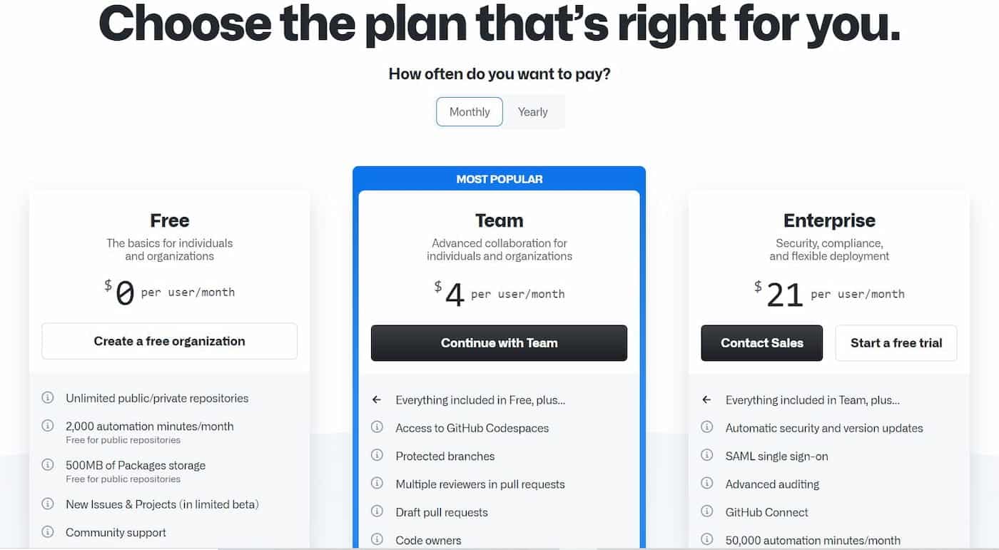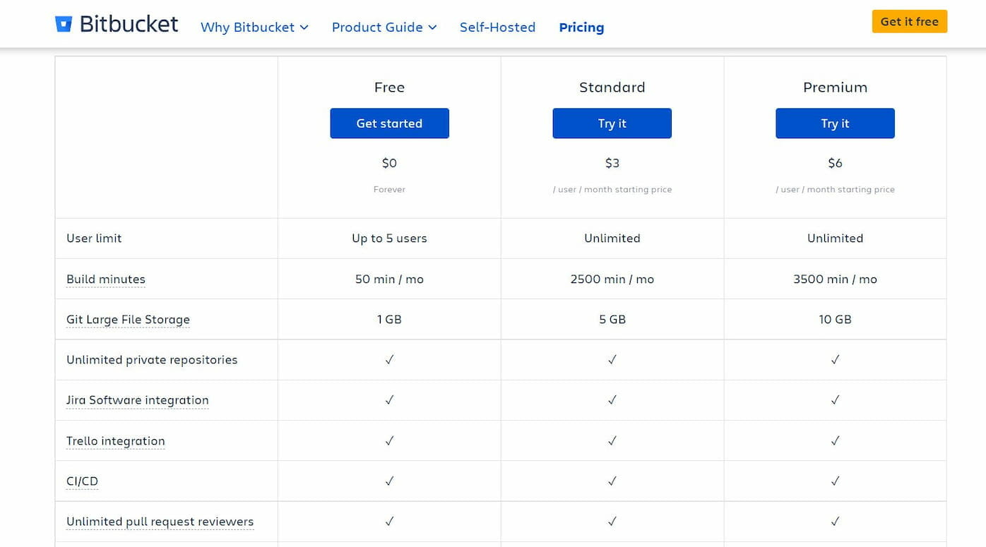 Bitbucket also allows you to create free public and private repositories with 1GB of storage. However, the free plans have a user limit of five.